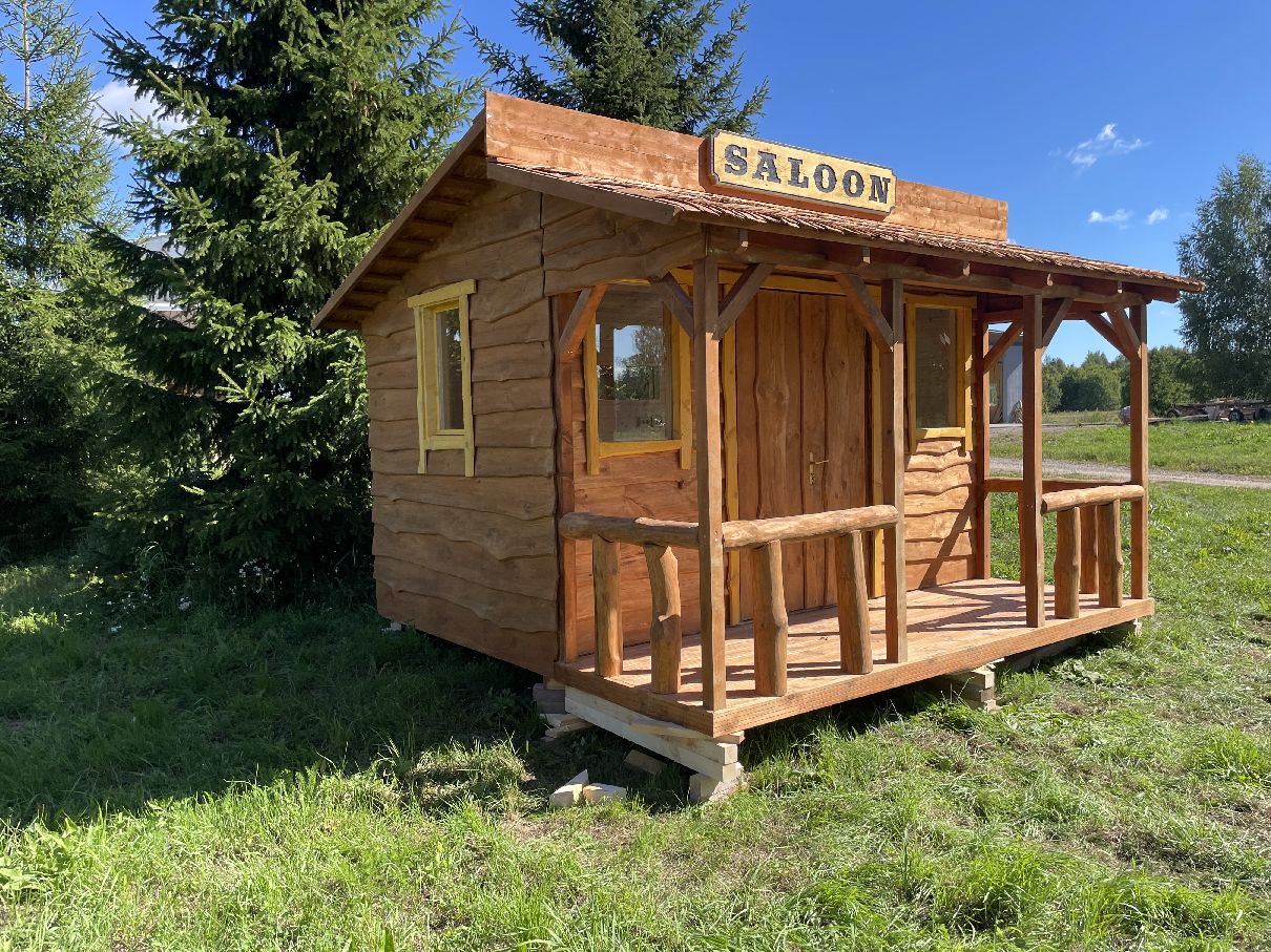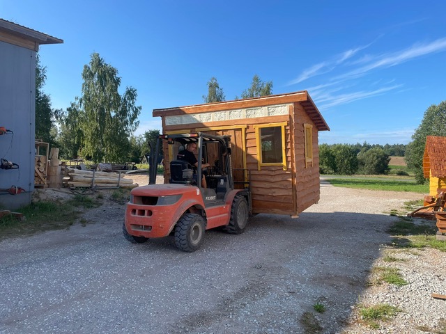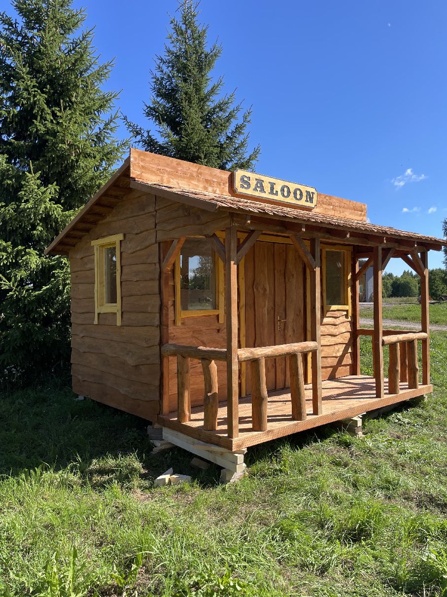 Handgemaakte, geïsoleerde blokhut van Nordic hout.