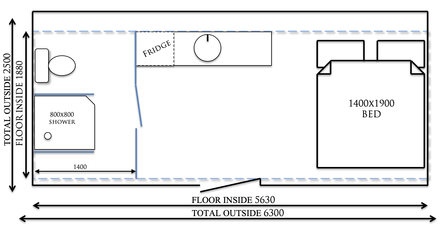 ● Totale afmetingen: 2,50 m x 6,30 m x 3 m (H)